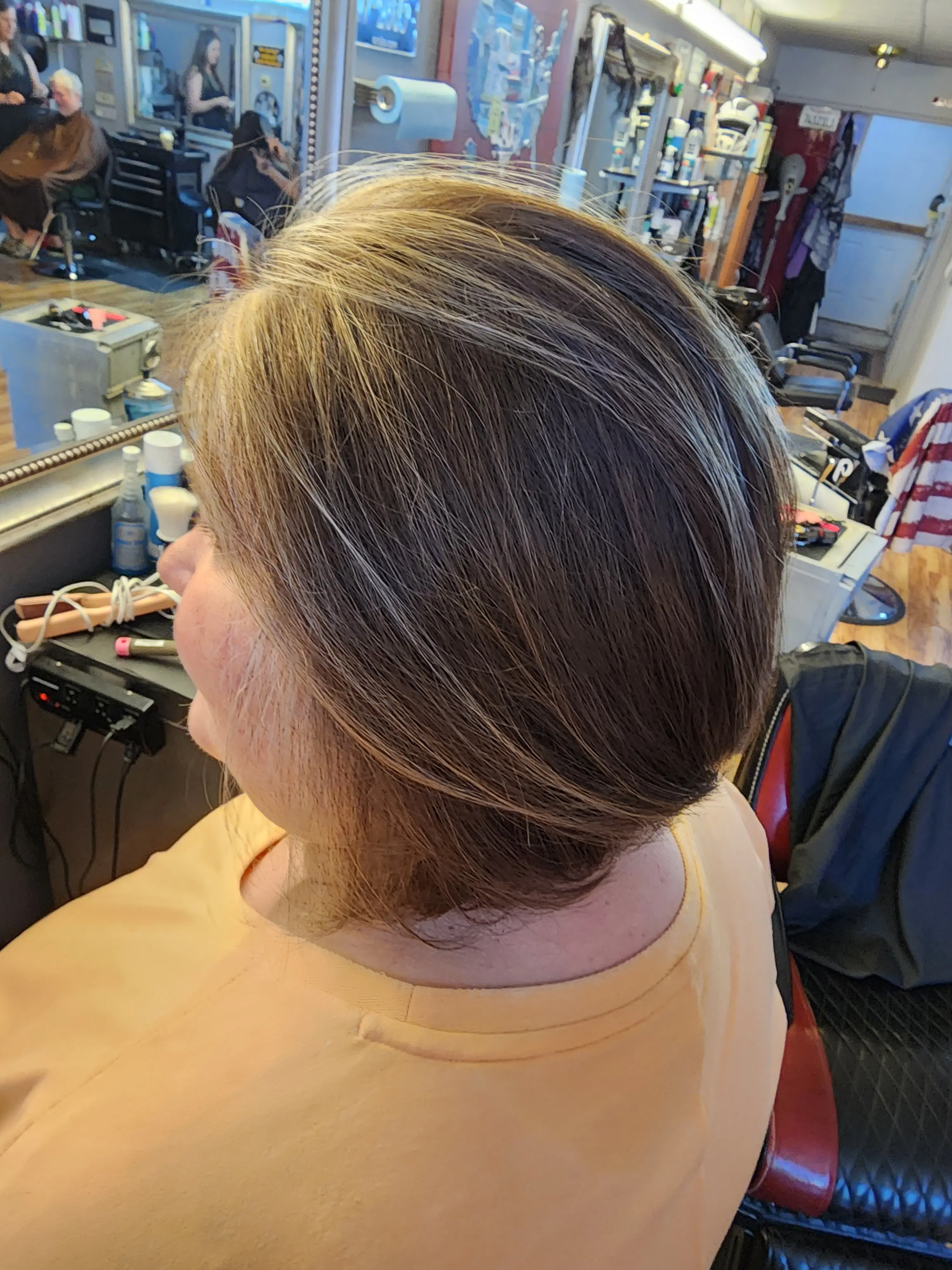 Short hair only, you can have, blue, pink , grey or white. I don't do long hair perms !!! Only sweet little ladies or cute kids, and men I can't say no too .